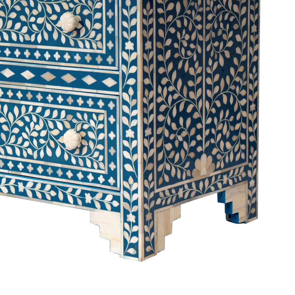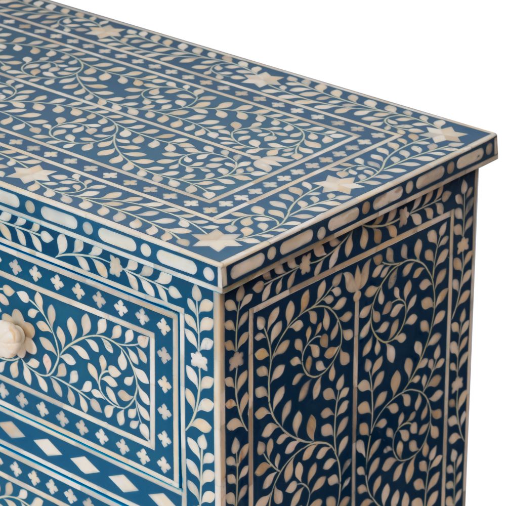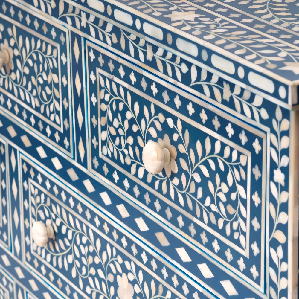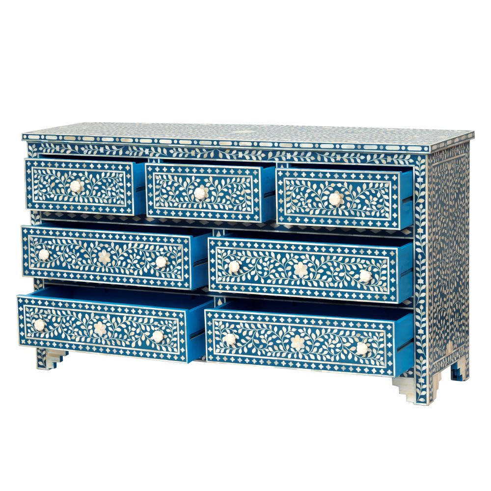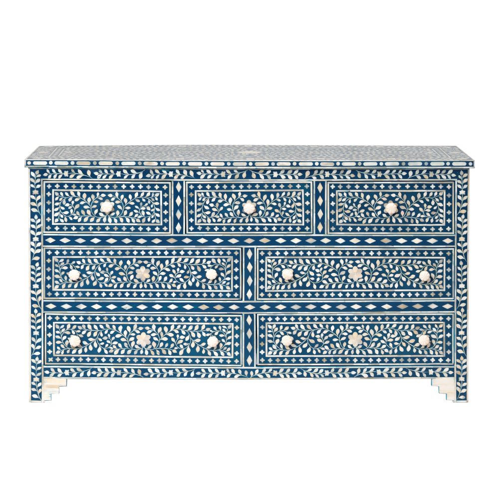 Commode 7 tiroirs en marqueterie d’os sur une structure en manguier massif.